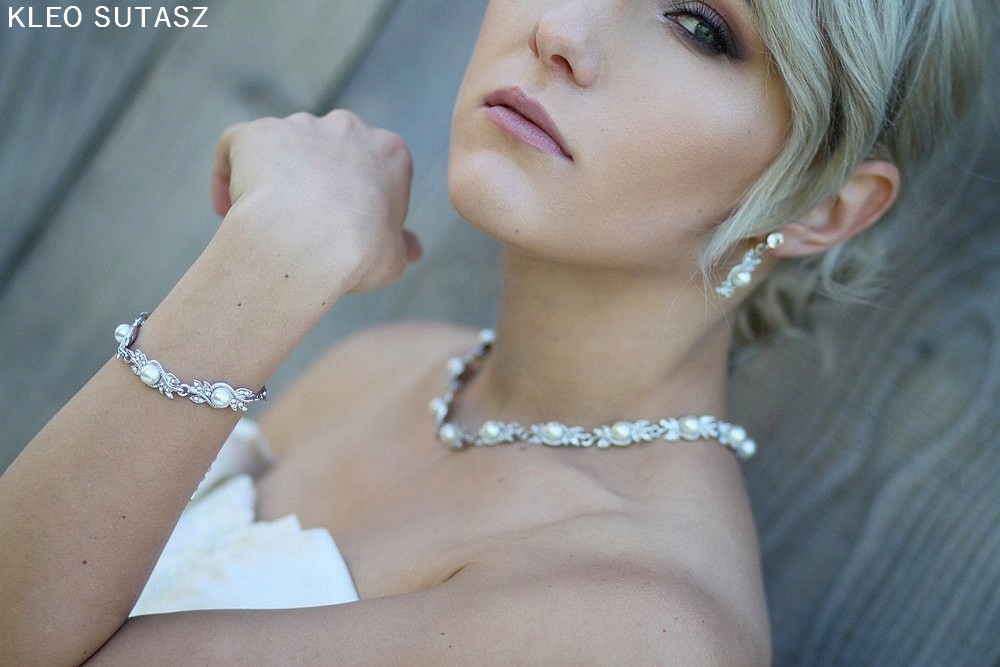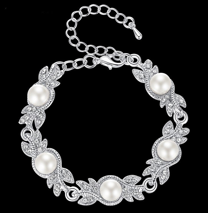 BRANSOLETKA Z PERŁAMI LIŚCIE SREBRNE