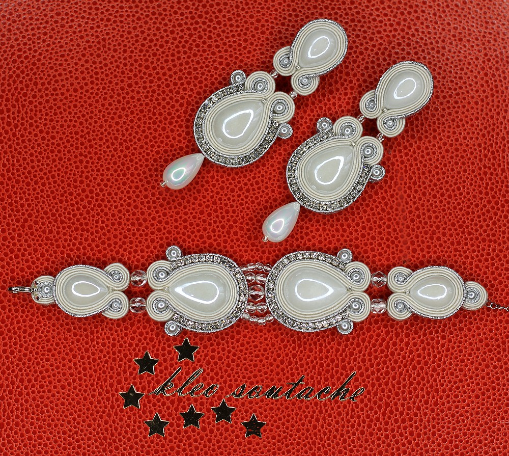 CLASSIC-KOLCZYKI ŚLUBNE, ECRU Z PERŁAMI, DŁUGIE SUTASZ