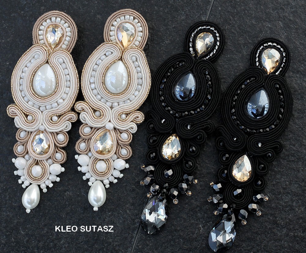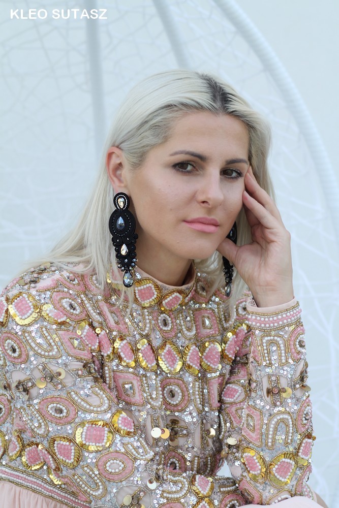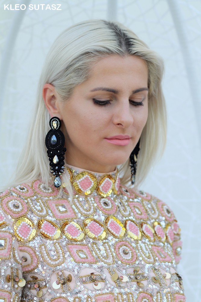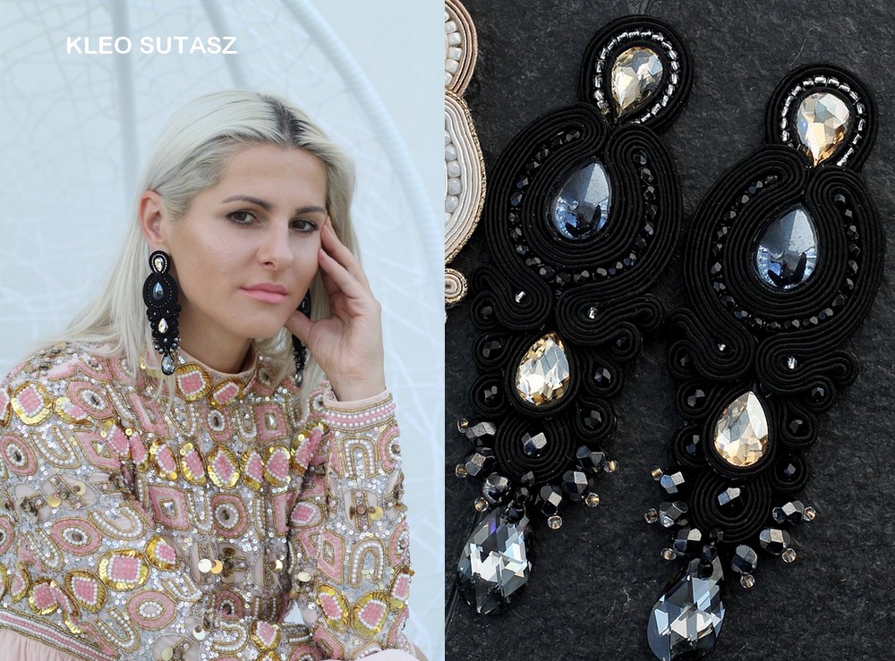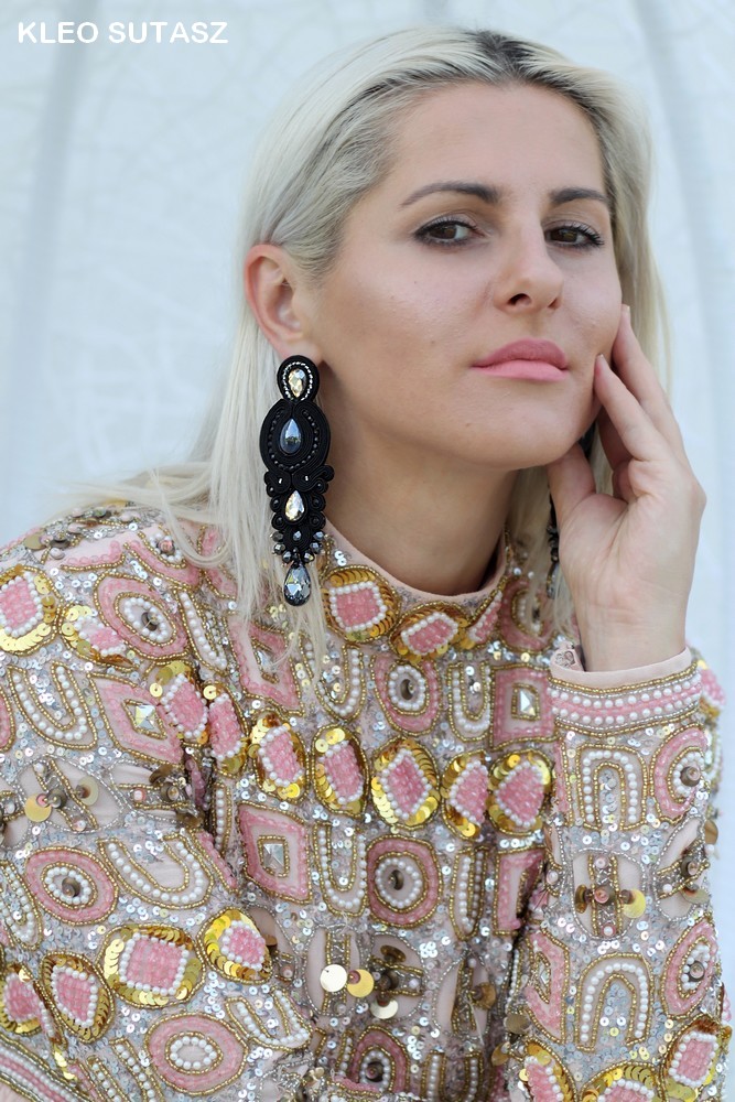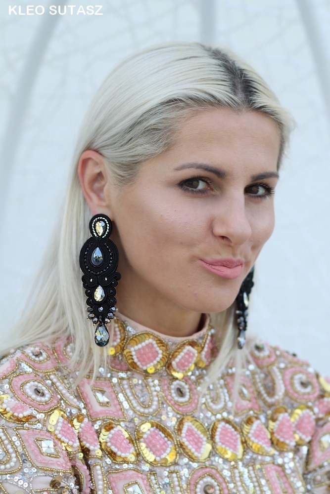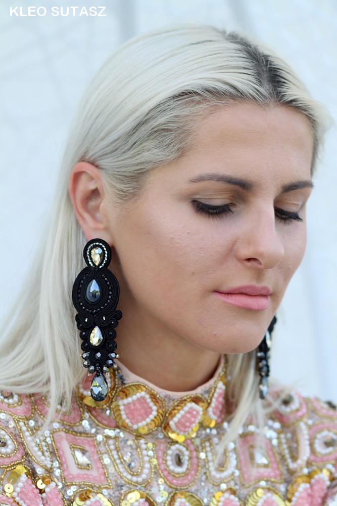 EQUADOR BLACK- CZARNE, SZAMPANOWE DŁUGIE DUŻE KOLCZYKI SUTASZ SWAROVSKI