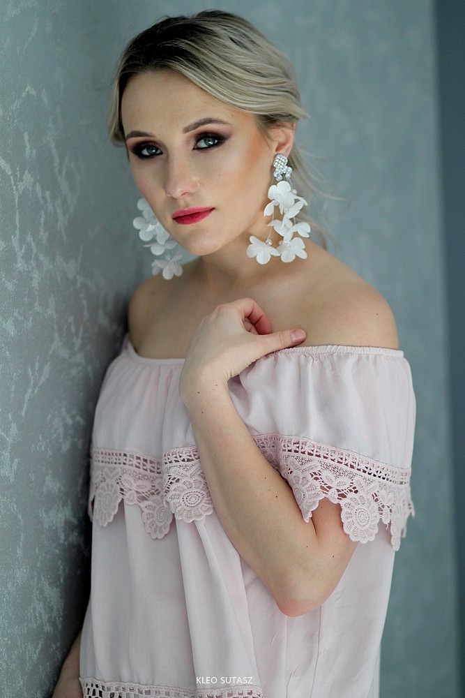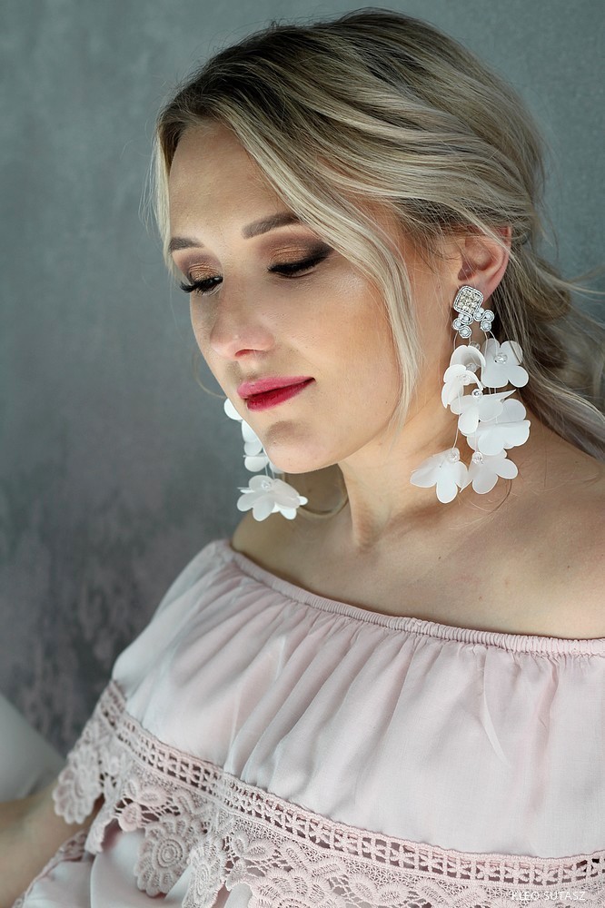 FLORE ME- KWIATOWE KOLCZYKI ŚLUBNE SUTASZ BIAŁE SREBRNE RUSTYKALNE BOHO