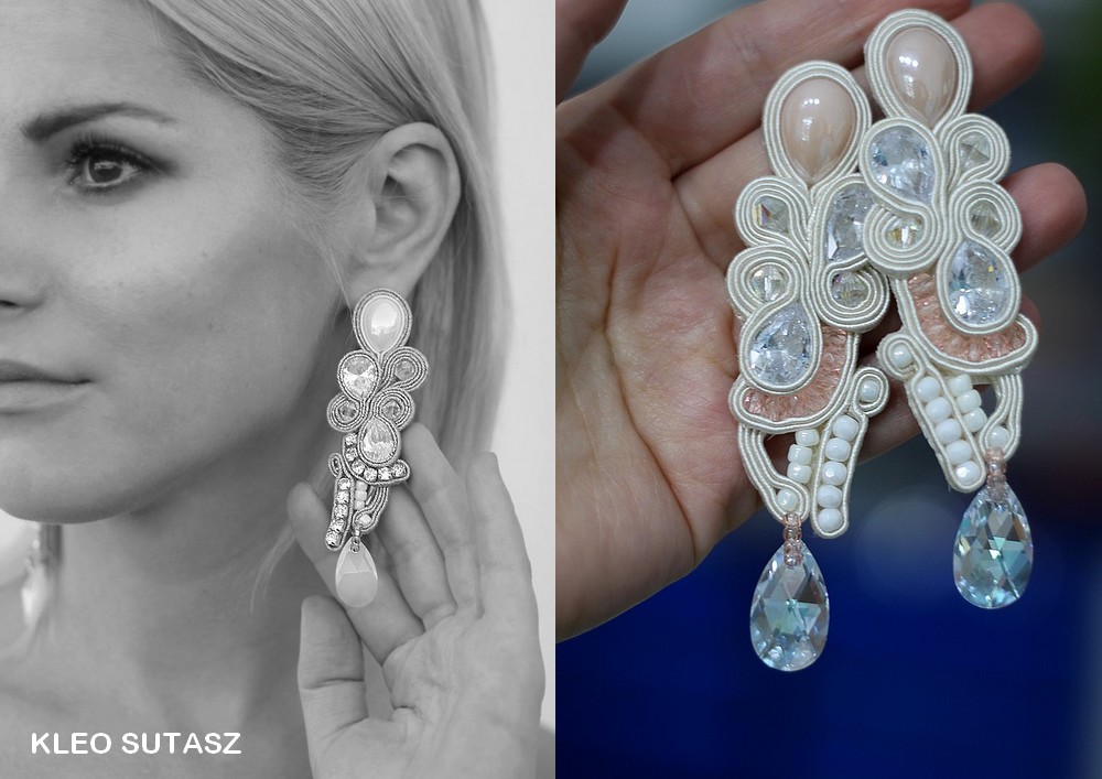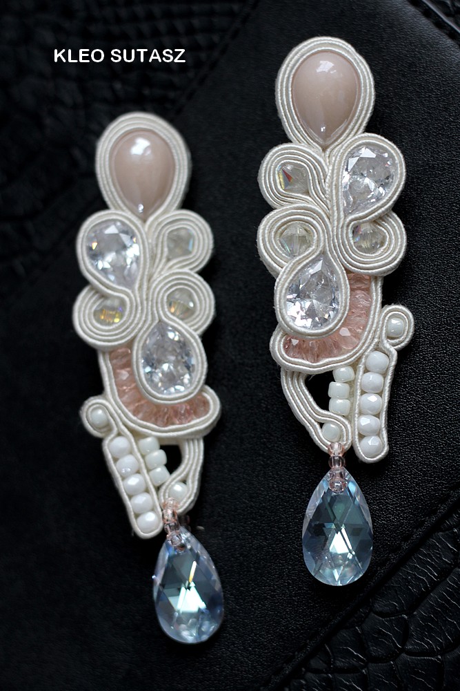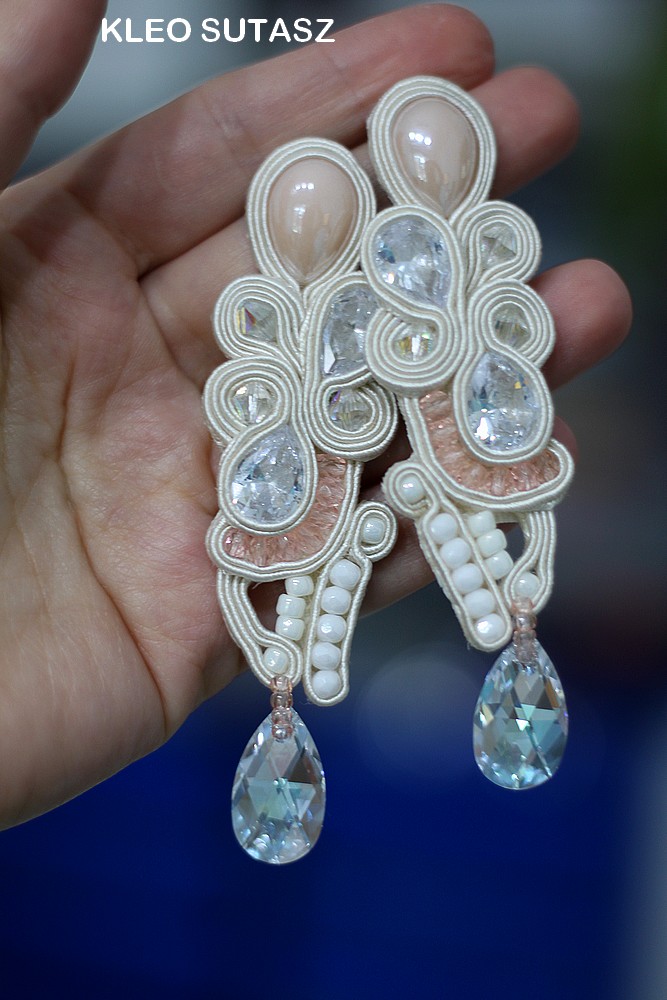 KALAHARI- ECRU, BRZOSKWINIOWE, NUDE, KOLCZYKI ŚLUBNE, SUTASZ SWAROVSKI