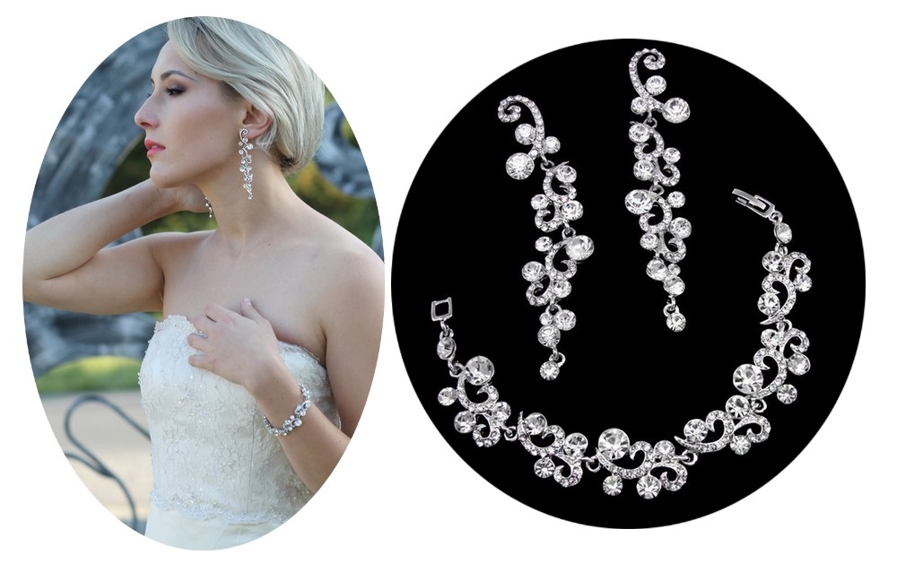 KOLCZYKI BRANSOLETKA KOMPLET SREBRNY ŚLUBNY