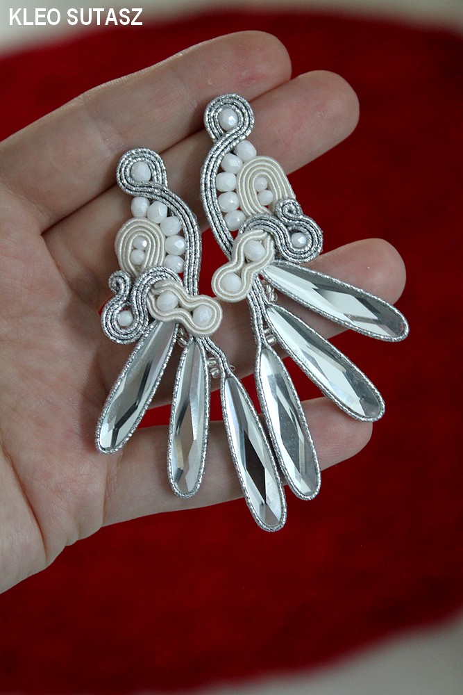 KOLCZYKI ŚLUBNE Z LUSTRZANYMI KRYSZTAŁAMI.