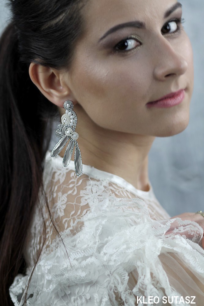 LAPIS- KOLCZYKI ŚLUBNE SUTASZ, ECRU SREBRO