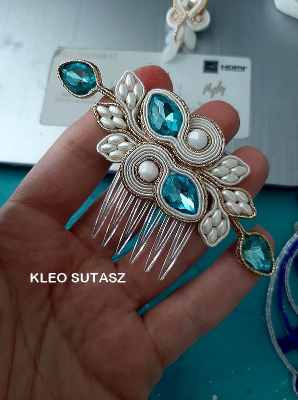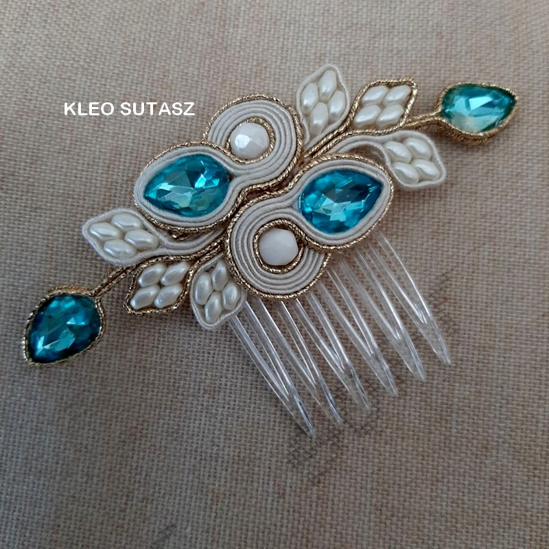 LULIZI- GRZEBYK , OZDOBA DO WŁOSÓW, SUTASZ, ŚLUBNY, ŚLUB TURKUS, ECRU, ZŁOTO, LIŚCIE, KLEO SUTASZ
