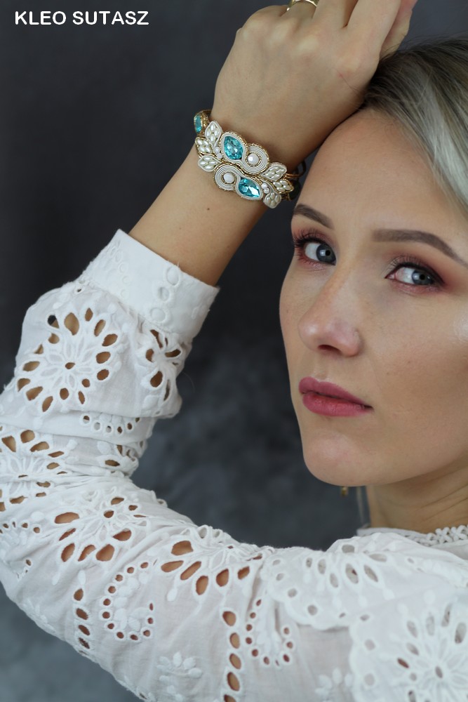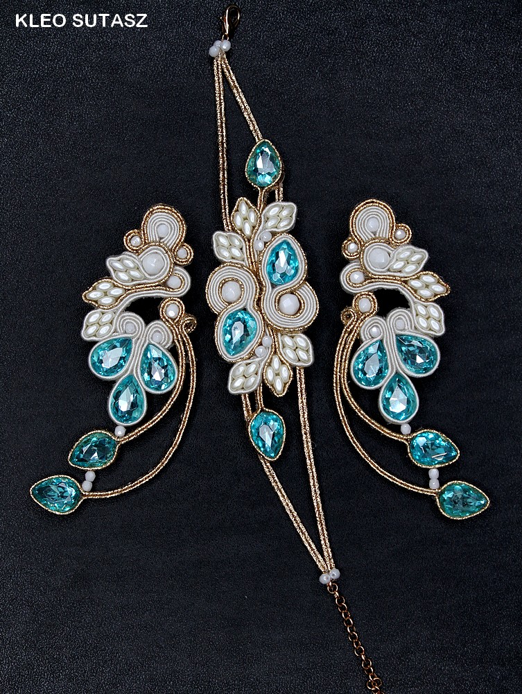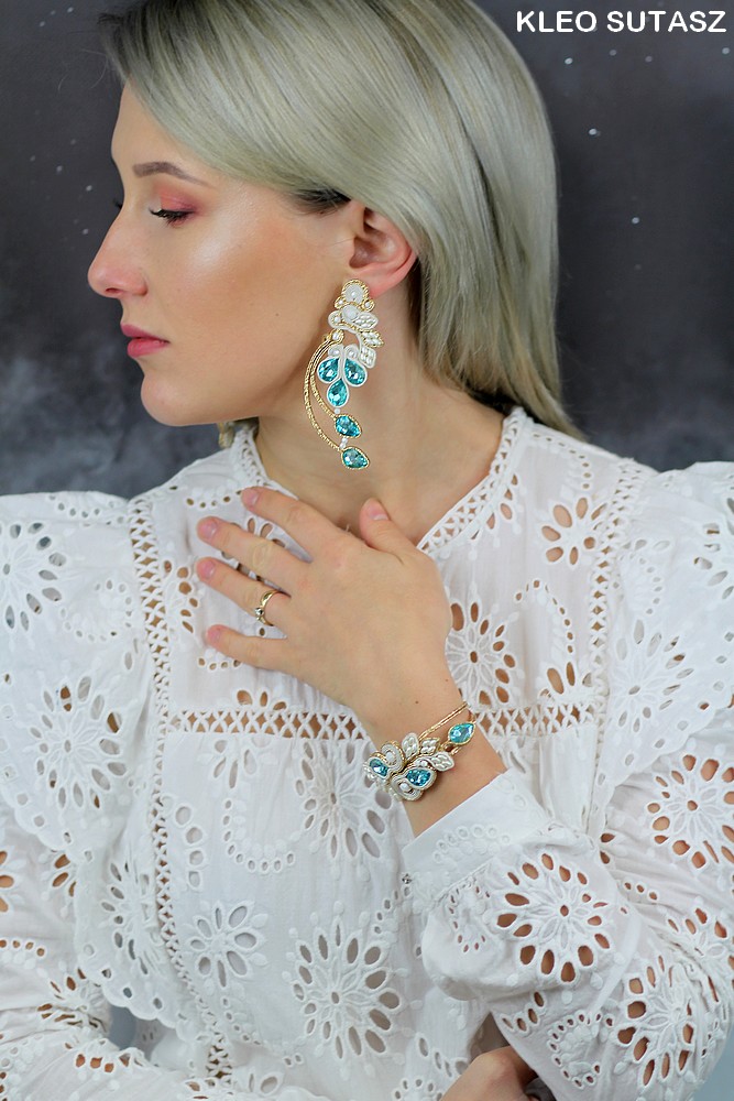 LULIZI- KOMPLET, KOLCZYKI, BRANSOLETKA, SUTASZ, TURKUS, ECRU, ZŁOTO, ŚLUB