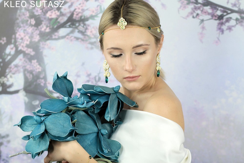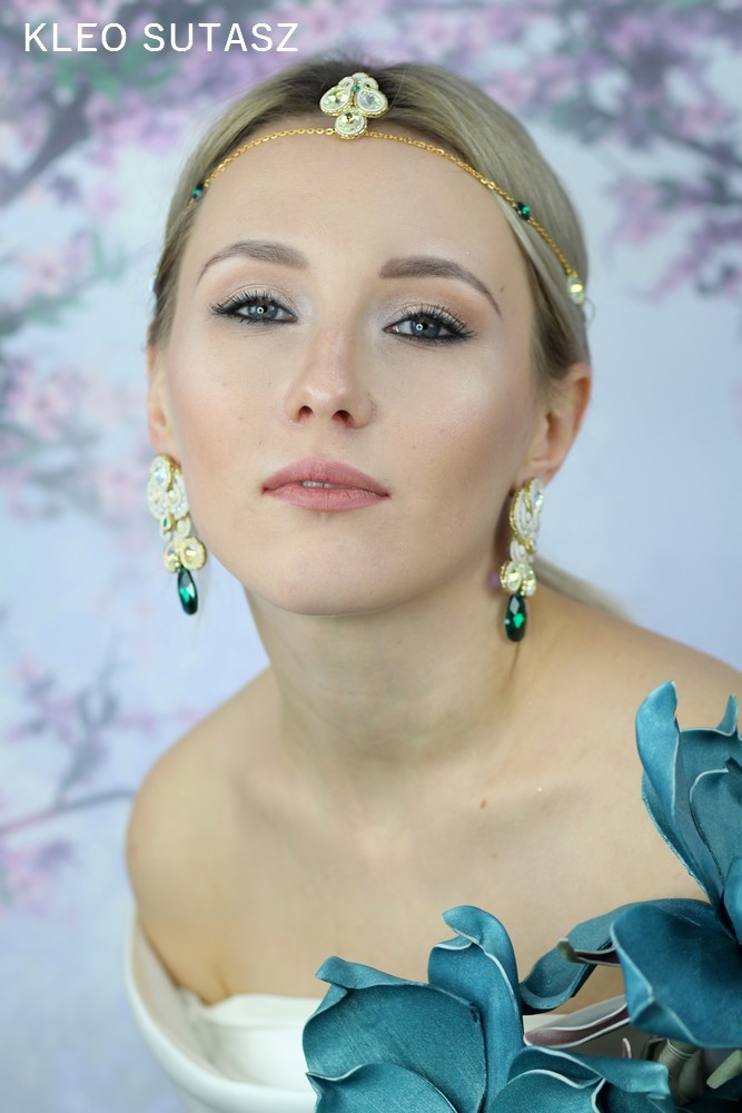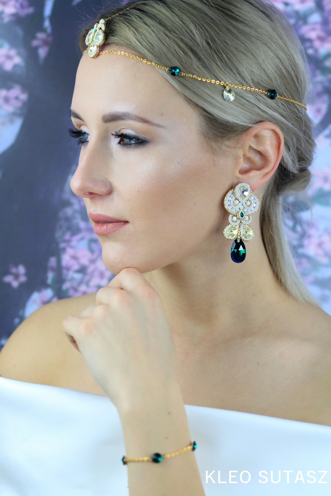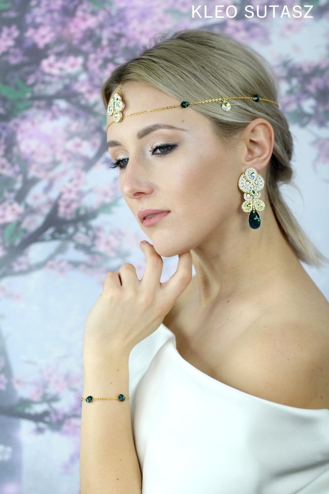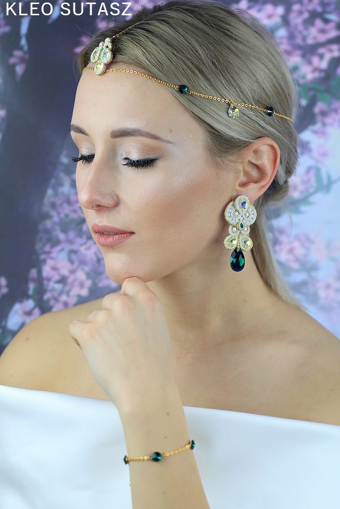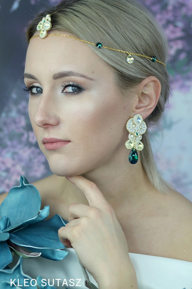 MADELINE EMERALD- SZMARAGDOWE, ZŁOTE, ECRU, KOLCZYKI