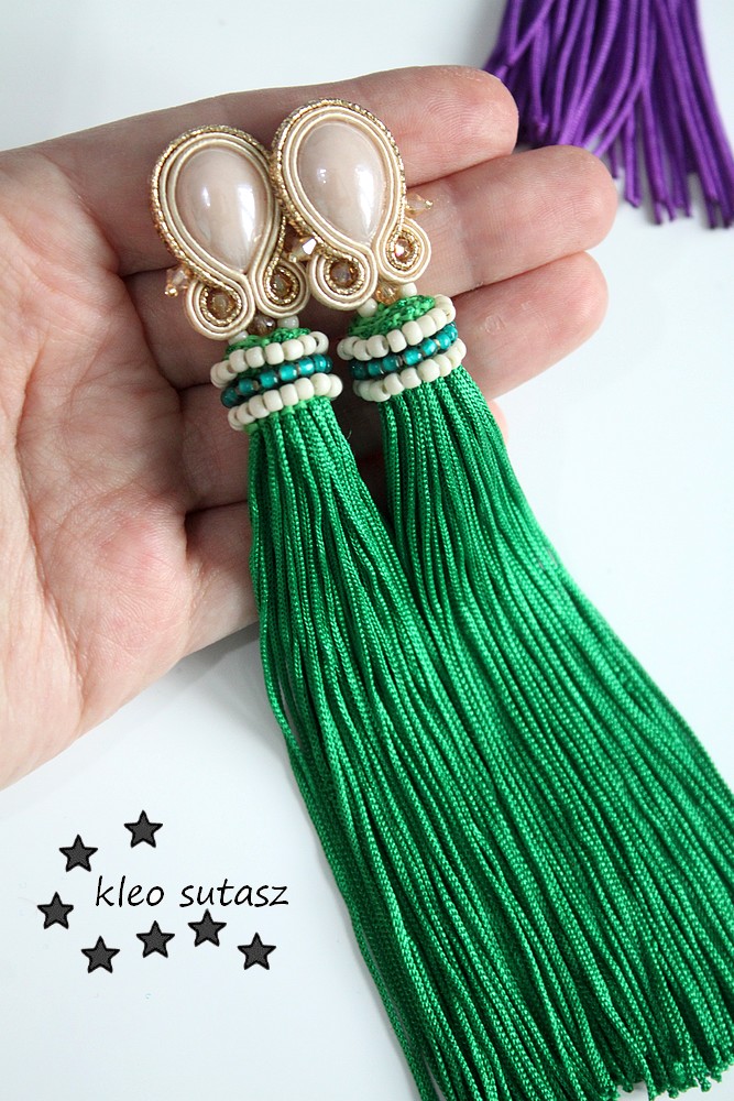MAXI CHWOSTY- KOLCZYKI SUTASZ, SZMARAGDOWE, ZIELONE, BEŻOWE, NUDE