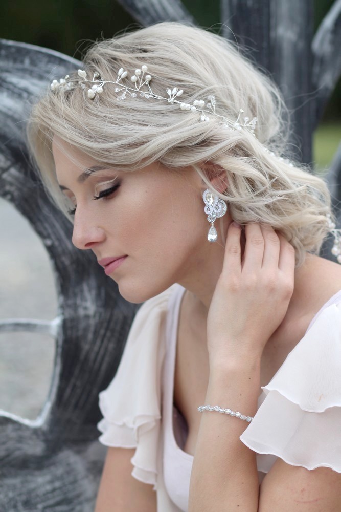 MEKNES- KOMPLET, KOLCZYKI, BRANOLETKA, BIEL, SREBRO, ŚLUB, SUTASZ