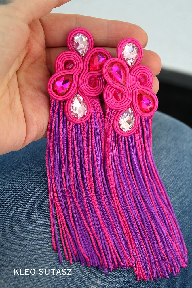 SANTIMO- KOLCZYKI Z CHWOSTAMI SUTASZ FUKSJOWE FIOLETOWE DŁUGIE DUŻE